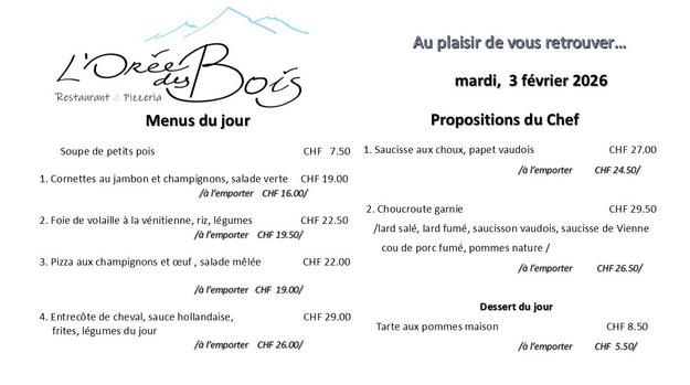 MENU DU JOUR